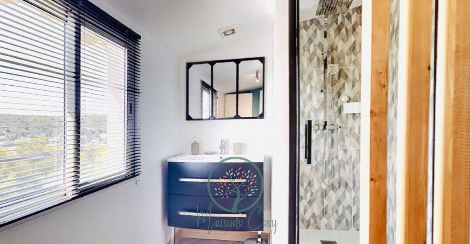 V Une salle d'eau entièrement rénovée avec WC et machine à laver avec fenêtre & VMC