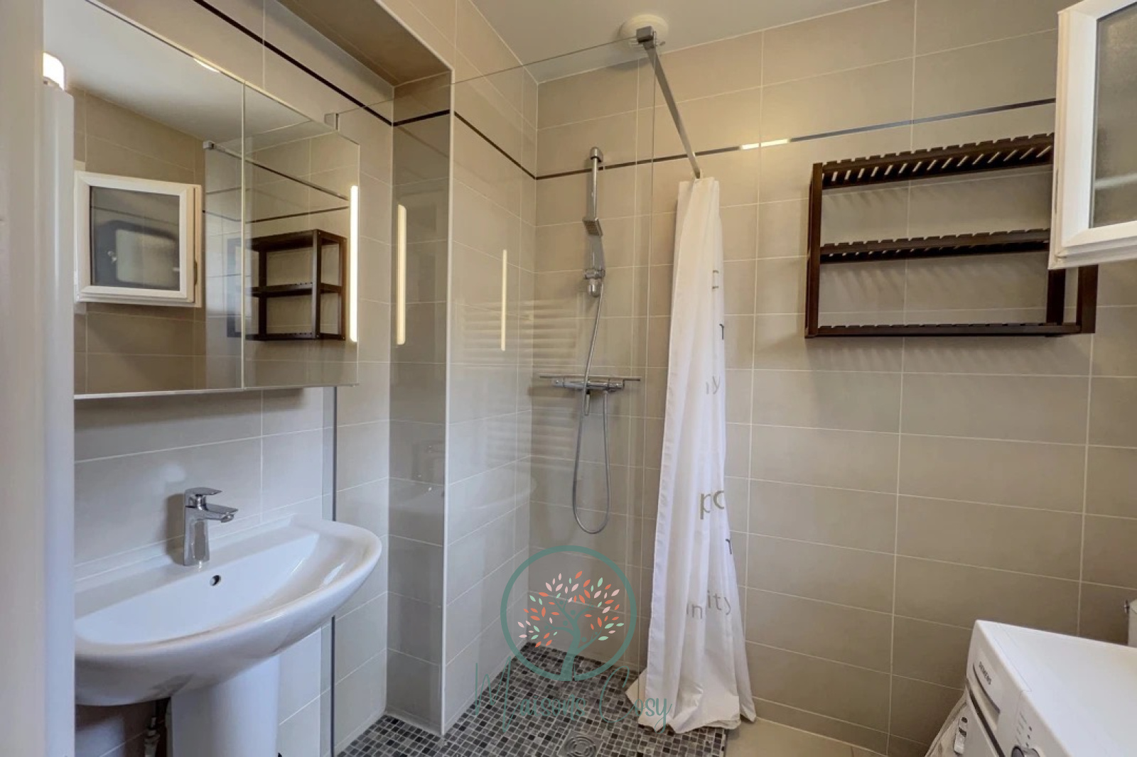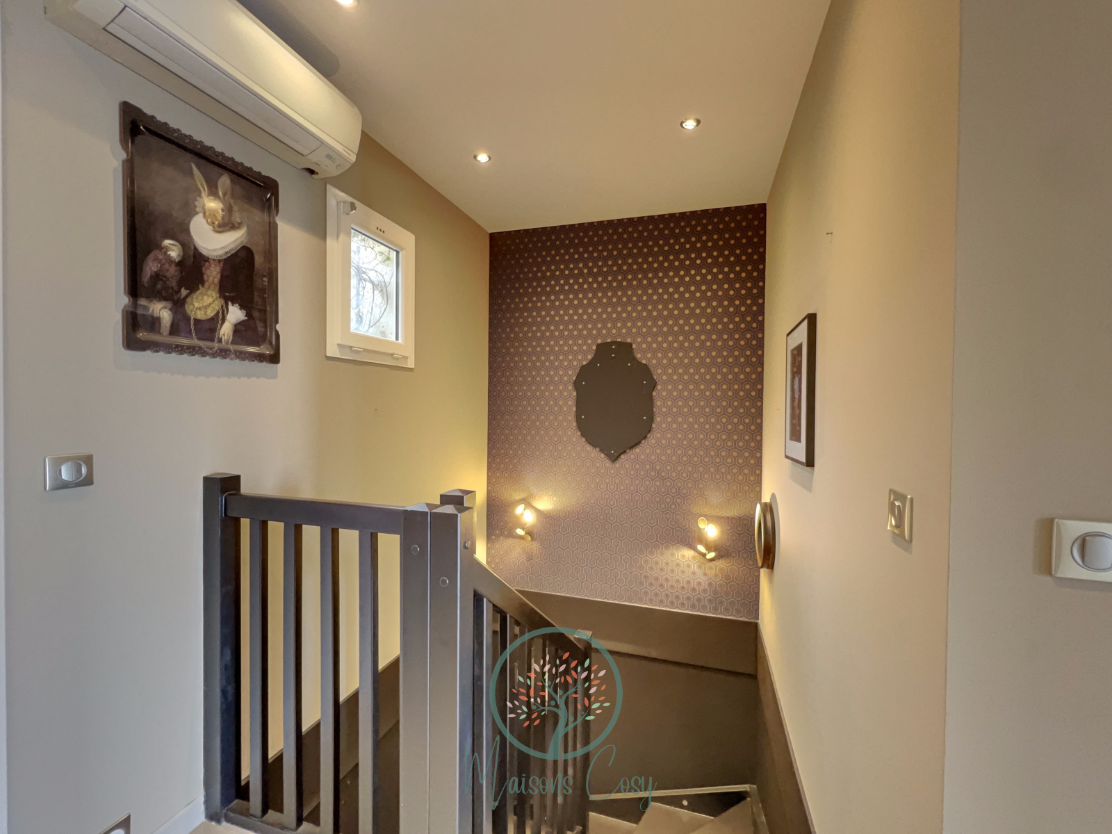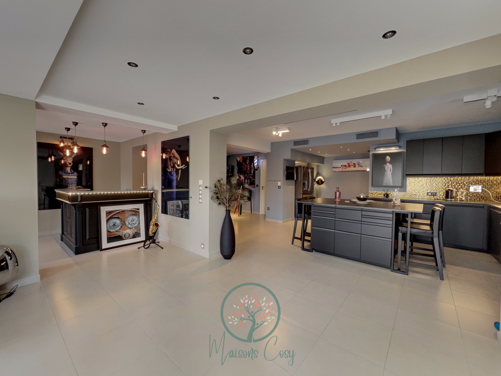 La maison possède 3 chambres, deux salles d'eau, une très belle cuisine enièrement équipée donnant sur un séjour de plus de 50 m2.