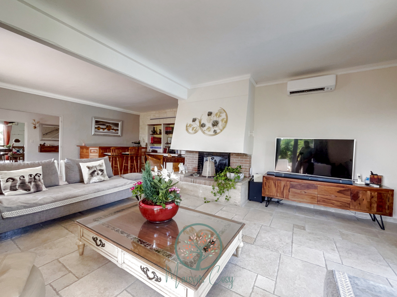 Chauffage : climatisation (pompe à chaleur), chaudière à pellets, cheminée.