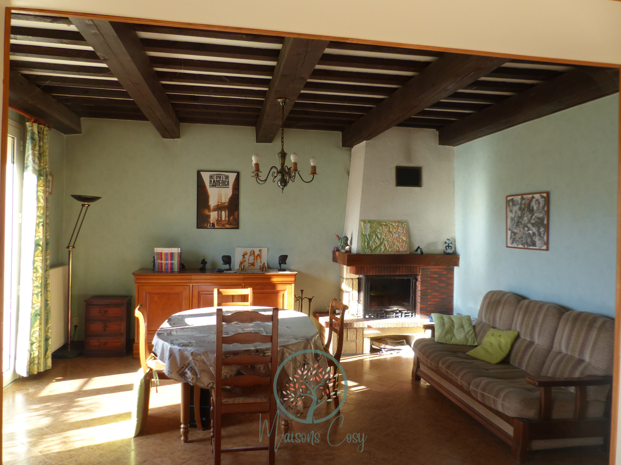 Au 1 étage: Belle pièce de vie avec cheminée de 40 m2, une Cuisine
